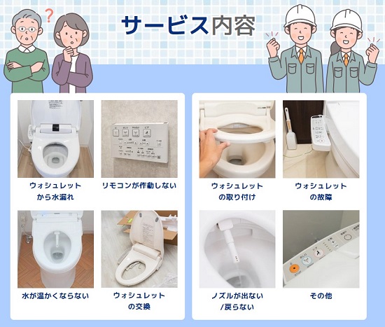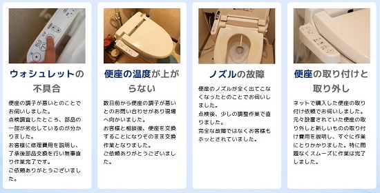 水戸市で対応可能な温水便座、ウォシュレットの修理サービスとなります。その他のトラブルやご相談に関しましてはお気軽に受付窓口までお問い合わせください。